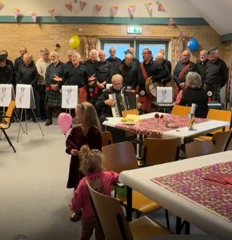Dirigente en begeleidster Sitta Bosman vierde 27 december haar 65e verjaardag. Dat gebeurde op een bijzondere wijze. Echtgenoot Peter had namelijk in het grote geheim ’t Trefpunt in Nieuwehorne afgehuurd. Met een aardige smoes bracht hij Sitta daar naar toe. Bij binnenkomst werd de totaal verraste Sitta muzikaal begroet door een bijna compleet koor, plus familieleden en vrienden.